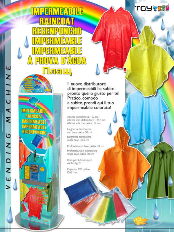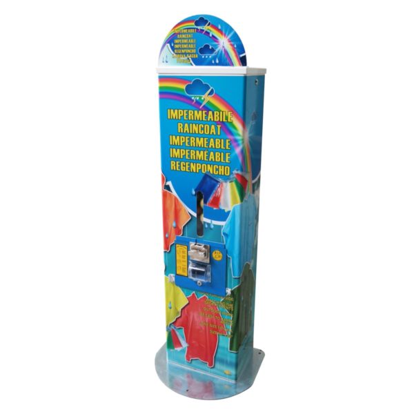 Inserisci la moneta, gira la maniglia della gettoniera e subito per te un impermeabile colorato.